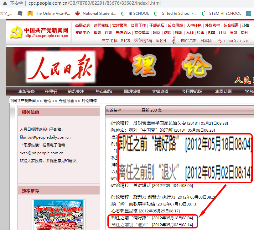 On 18 May 2012, the People’s Daily published an editorial entitled “Finish the paving way before leaving office”. For the third time, it publicly put pressure on the Hu Jintao clique and also launched a challenge to the Jiang Zemin clique.